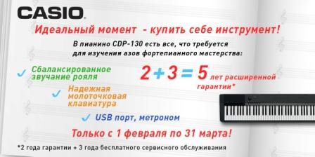 Расширенная гарантия 5 лет на цифровое фортепиано CASIO CDP-130!
