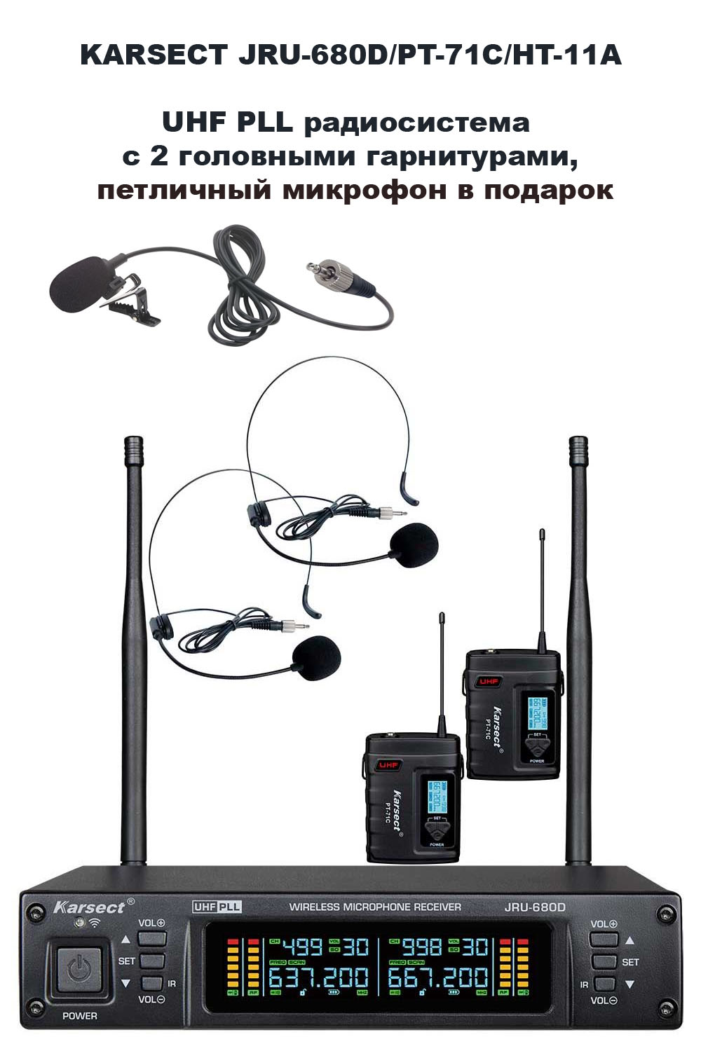 UHF PLL радиосистема с 2 головными гарнитурами, петличный микрофон в подарок