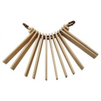 Данная модель сделана из дерева, представляет собой множество пластин, которые связаны меж собой. Трещотка проста и легка в обращении, подойдет для игр с детьми.