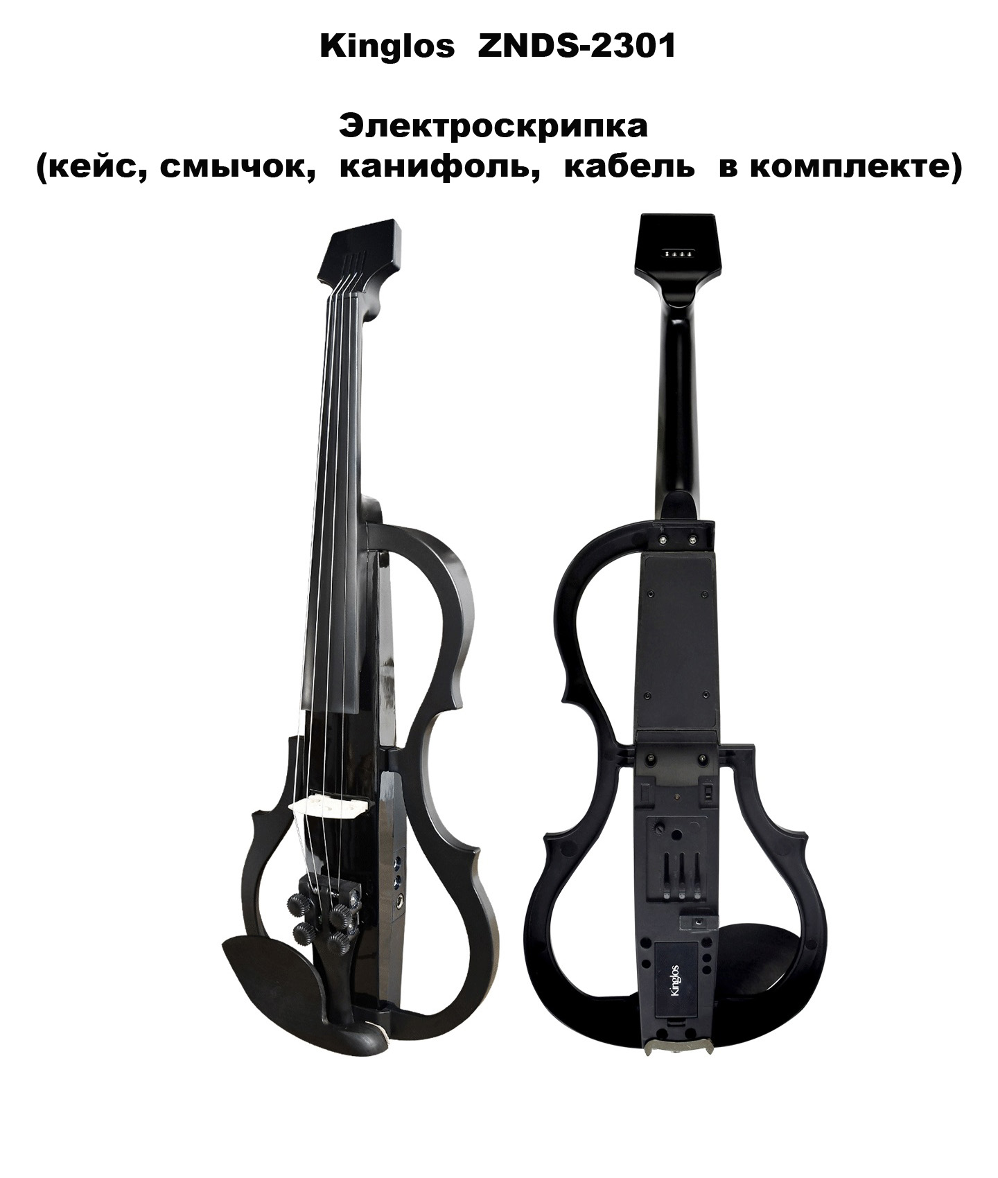 Kinglos ZNDS-2301 Электроскрипка (кейс, смычок, канифоль, кабель в комплекте) • размер 4/4, • цвет – черный • материал корпуса , гриф – Углеродное волокно + полипропилен, • встроенный активный темброблок с эквалайзером DV-10B (Германия), • Регулировки - громкость, тон, тумблер включения и выключения со светодиодным индикатором • питание 9V, аккумулятор в комплекте, • Разъем для наушников, линейный выход , выход для микрофона • Возможность подключения к телефону • в комплект входит: скрипка, смычок, кейс , канифоль , шнур