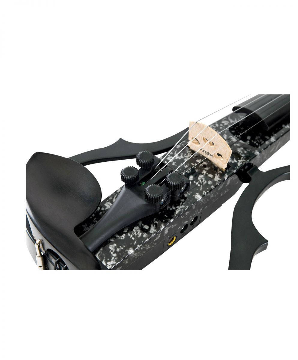 Kinglos ZNDS-2302 Электроскрипка (кейс, смычок, канифоль, кабель в комплекте) • размер 4/4, • цвет – черный, белый • материал корпуса , гриф – Углеродное волокно + полипропилен, • механические колки облегчают настройку, а струны не соскальзывают во время игры • встроенный активный темброблок с эквалайзером DV-10B (Германия), • Регулировки - громкость, тон, тумблер включения и выключения со светодиодным индикатором • питание 9V, аккумулятор в комплекте, • Разъем для наушников, линейный выход , выход для микрофона • Возможность подключения к телефону • в комплект входит: скрипка, смычок, кейс , канифоль , шнур