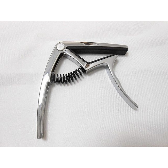 Каподастр металлический на пружине для акустической гитары, серебряный + медиатор