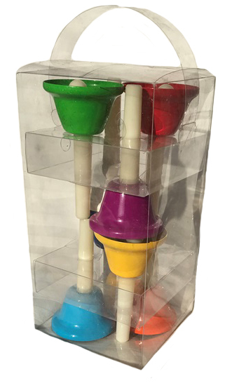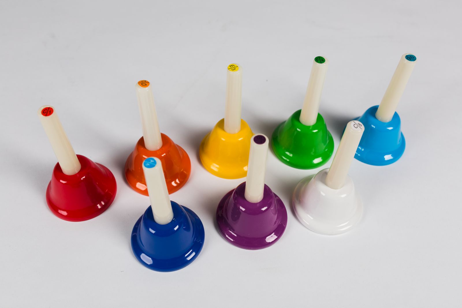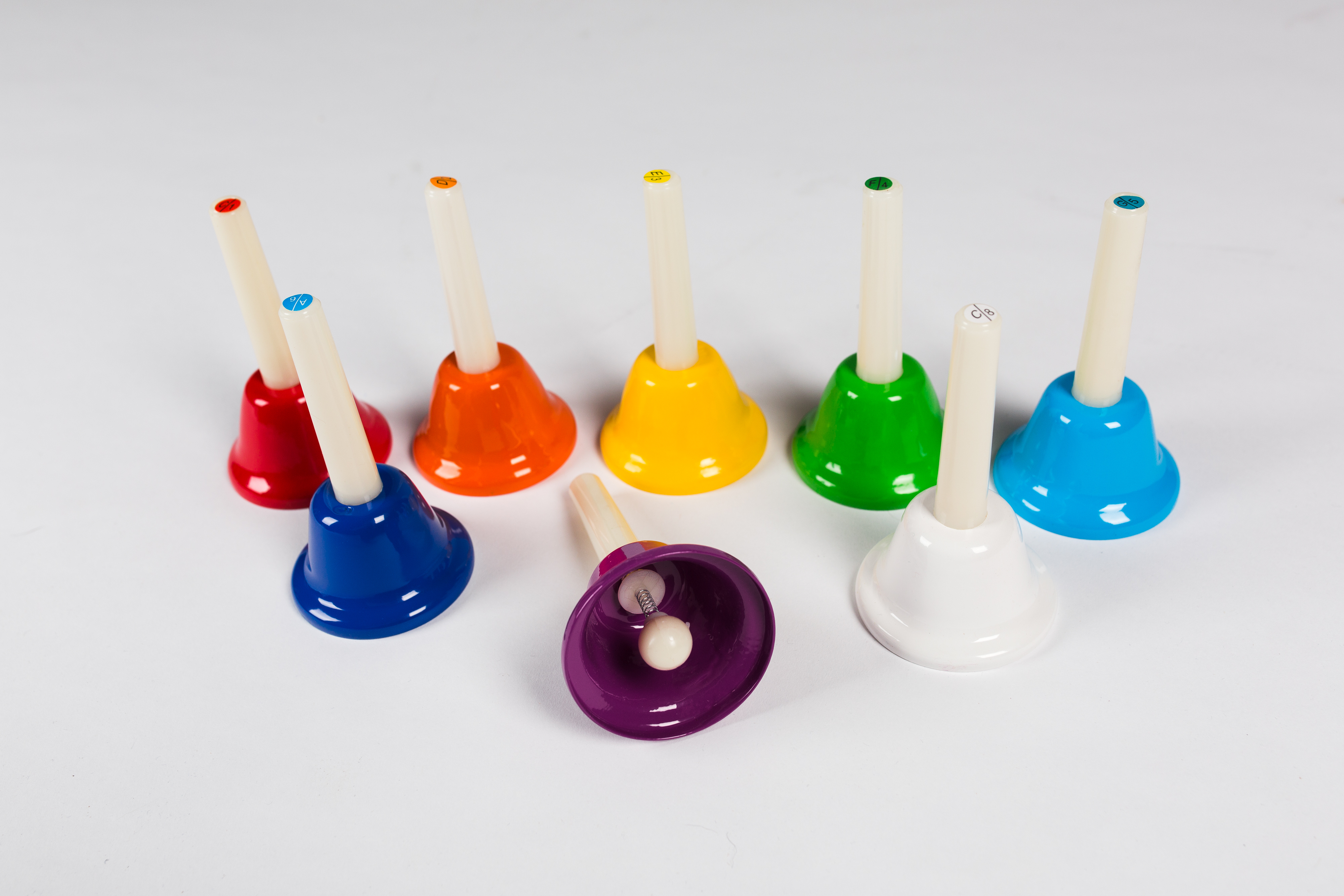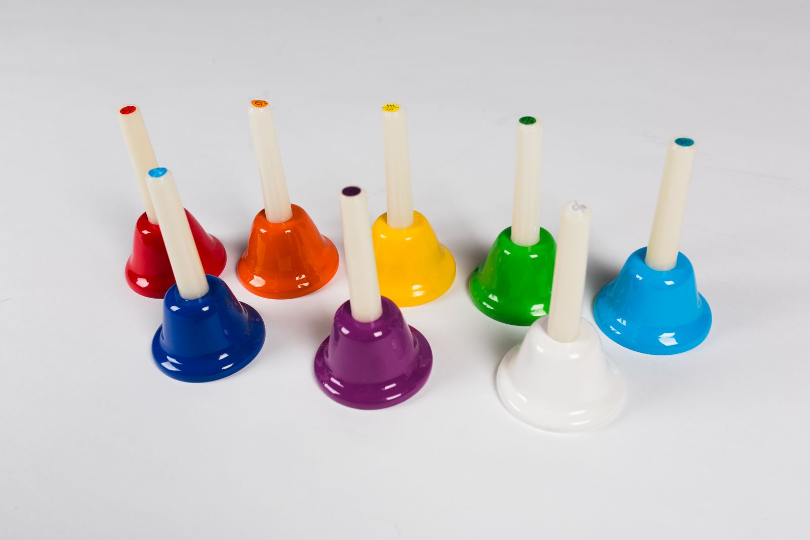 разноцветные, 8 нот, ноты подписаны на ручке колокольчика.