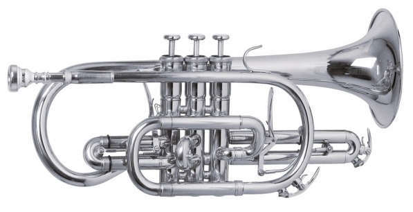 Корнет с тригером Полупрофессиональная модель CR-302S покрытая серебром. Чаще всего корнеты используется в духовых оркестрах, для исполнения главных мелодических партий и для обучения в музыкальных школах.