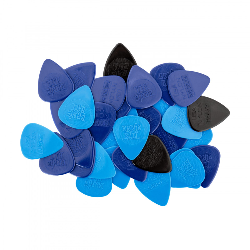 Стандартные медиаторы Ernie Ball изготавливаются из целлюлозы и доступны в трех вариантах: тонкий, средний и толстый.