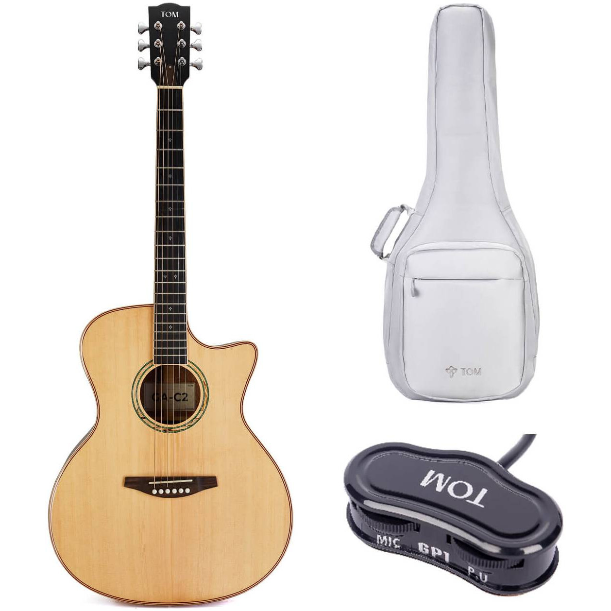 TOM GA-C2E электроакустическая гитара в корпусе гранд аудиториум с вырезом. Верхняя дека из массива ели и корпус из красного дерева. В комплекте качественный чехол.