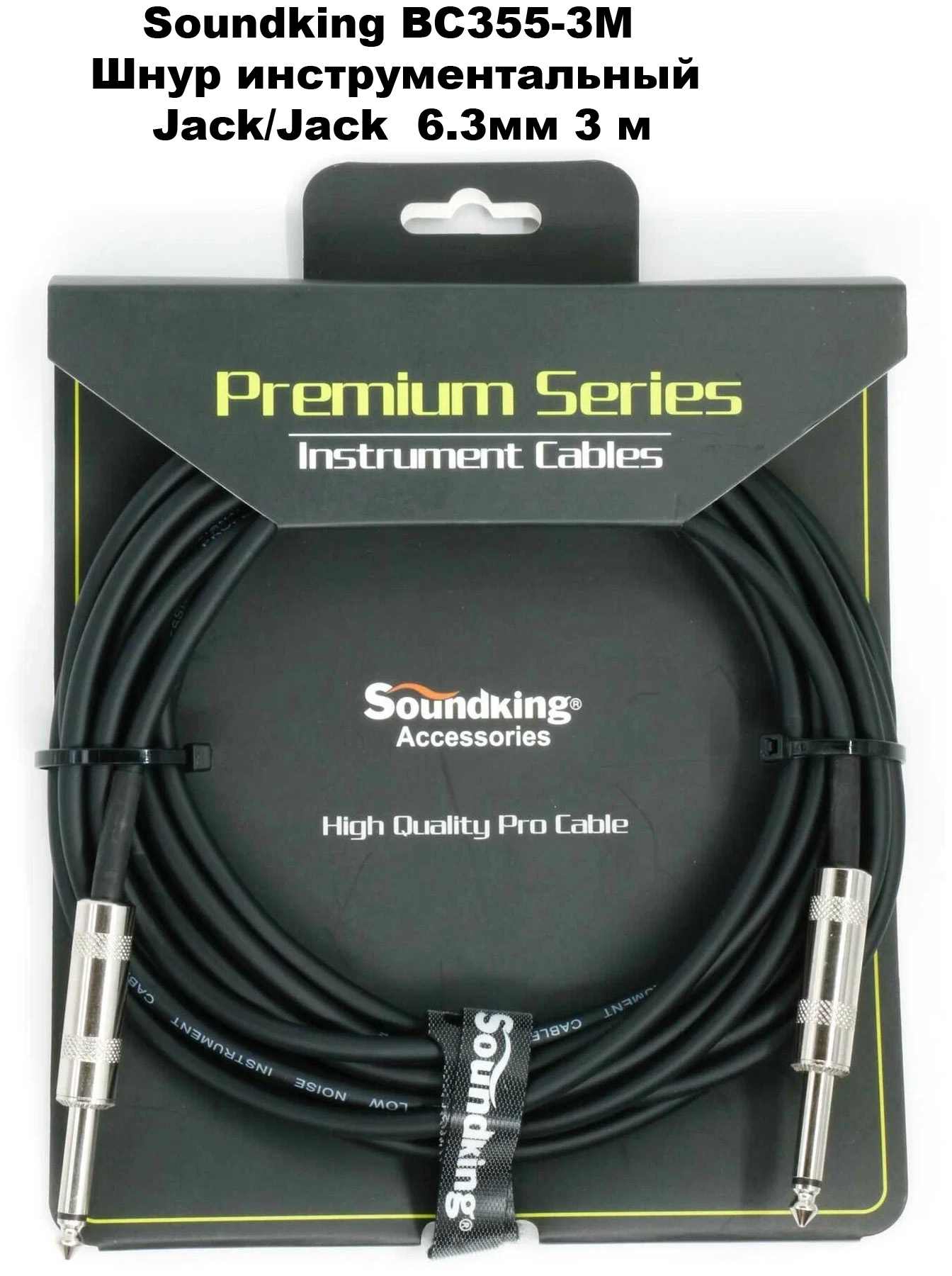 Шнур инструментальный  Soundking BC355-3M (Пр-во КНР) разъемы Jack/Jack 6,35мм металлические разборные, Длина: 3 метра. Проводники: 20х0,12. Изоляция: полиэтилен. Экран: спиральный 64х0,12. Оболочка: ПВХ. Диаметр кабеля - 6мм, цвет - Черный