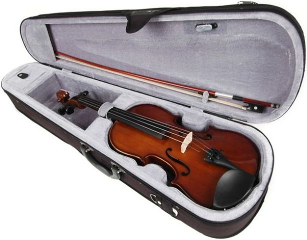 Скрипка в комплекте с подбородником, футляром, смычком и канифолью.