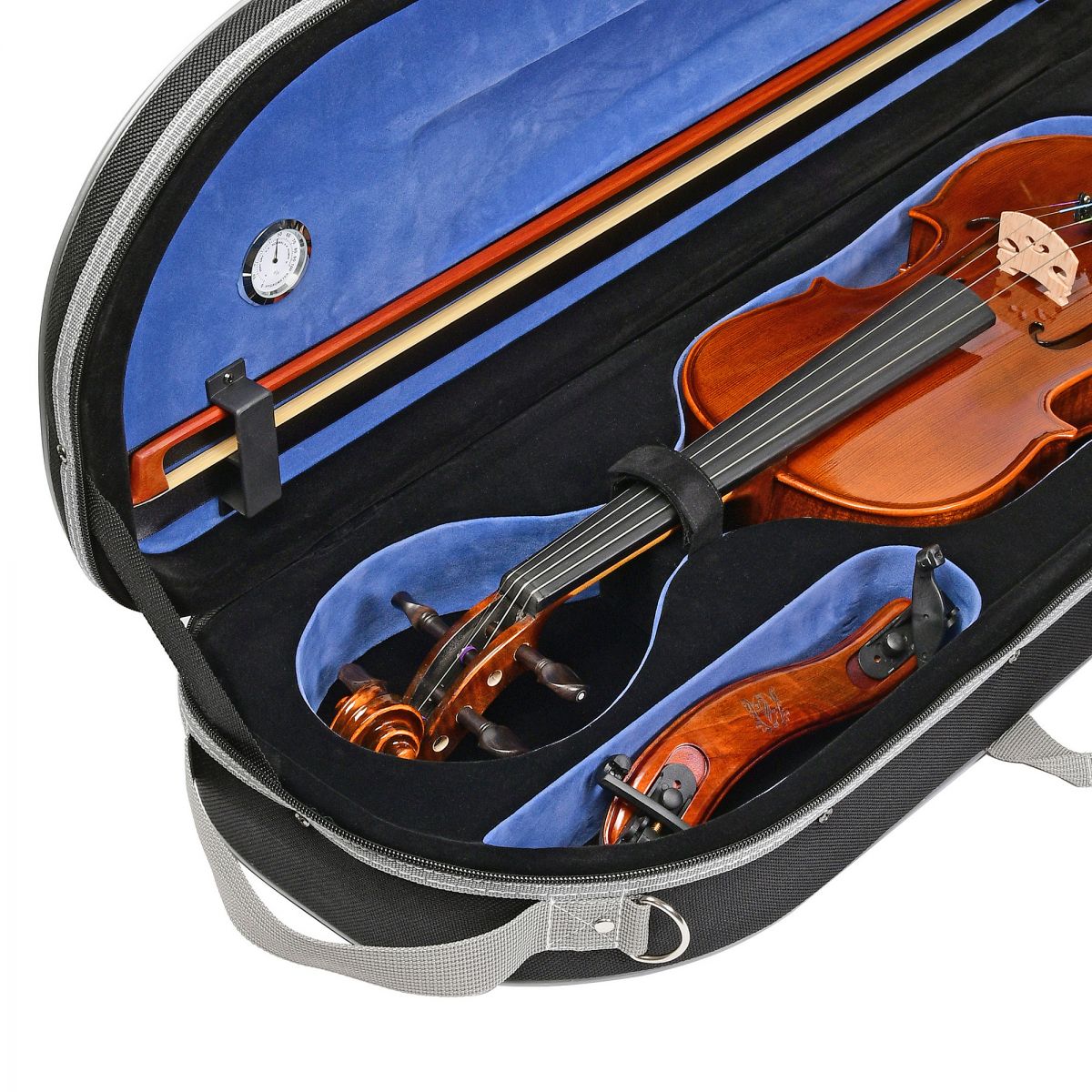 кейс: облегчённый по форме луны, с двумя дополнительными отделениями для мостиков и 2-х смычков,