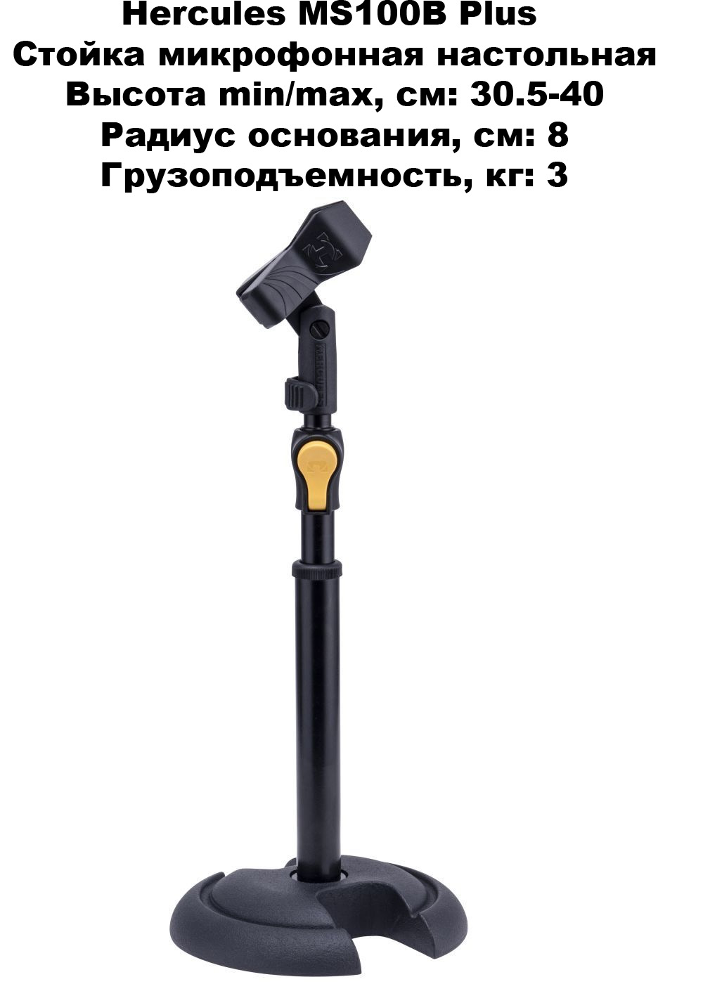 Hercules MS100B Plus Стойка микрофонная, настольная с круглым основанием, система EZ Grip, 30- 40 см