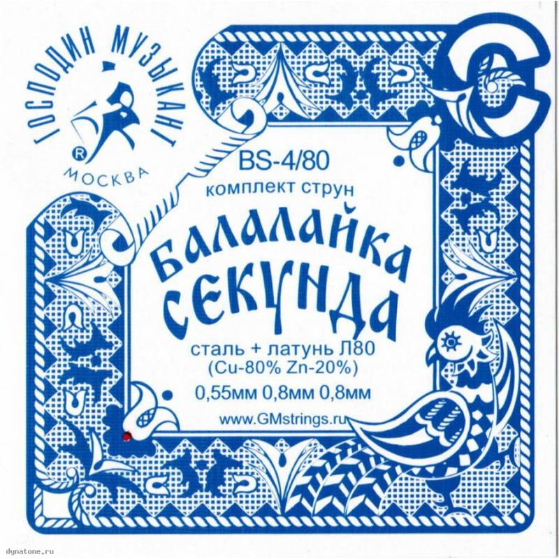 Господин музыкант BS-4/80 - Комплект струн для балалайки Cекунда сталь + Л80