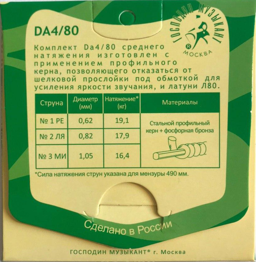 Господин музыкант DA-4/80 - Струны для домры альт, зеленая пачка, сталь80/20
