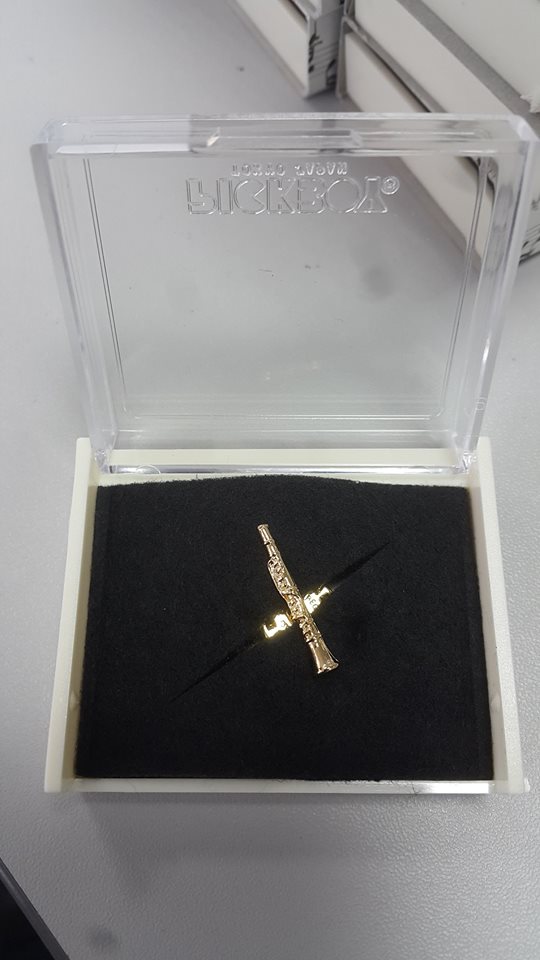 Значок на клипсе золотое напыление"кларнет" Pick Boy made in Japan