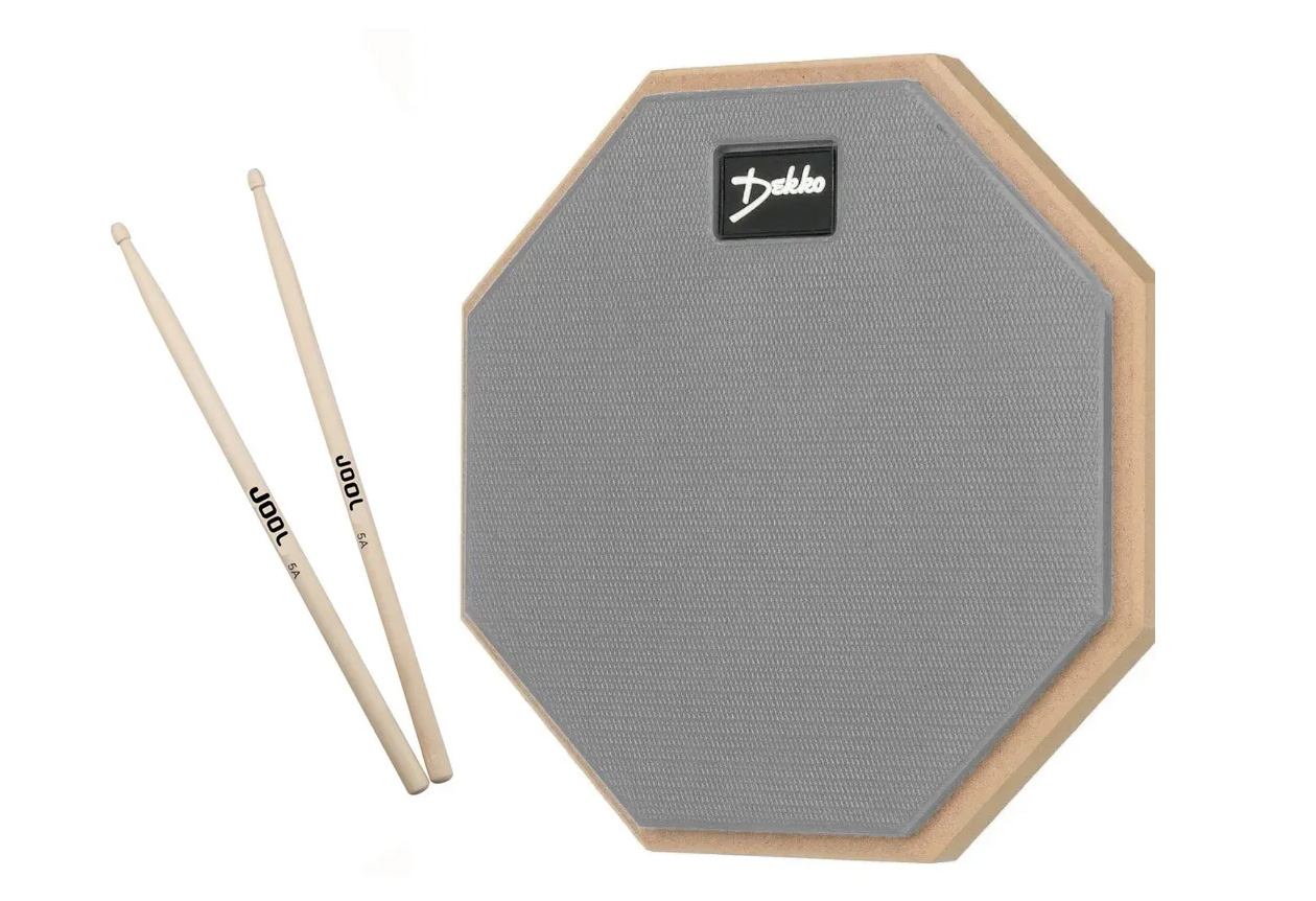 Односторонний тренировочный пэд Dekko PAD8 PACK СЕРЫЙ, с палочками 5А