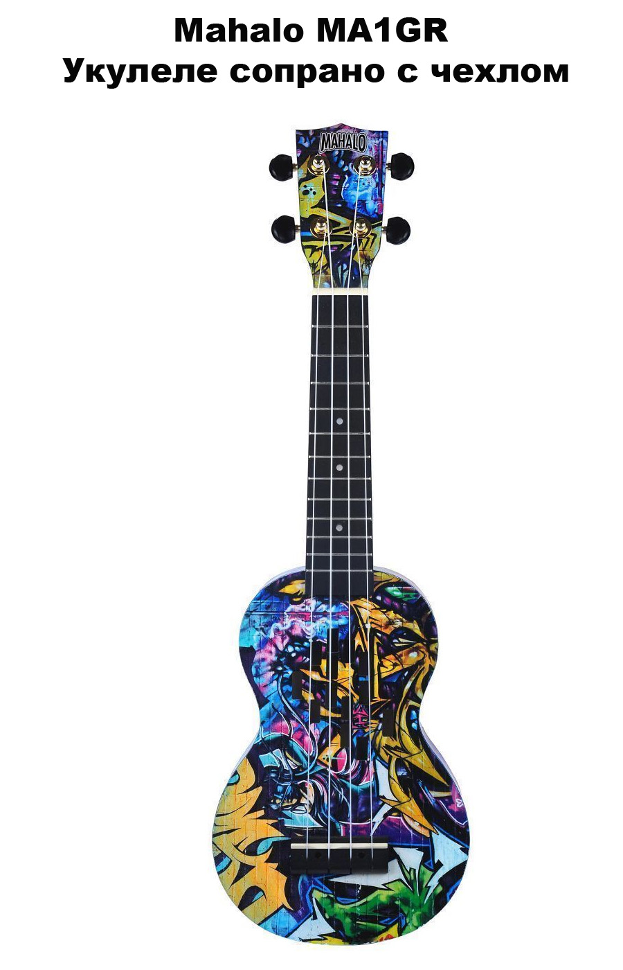Mahalo MA1GR Укулеле сопрано с чехлом, корпус - липа, гриф - габон, накладка на гриф махагони, струны Aquila Super Nylgut, матовая, рисунок - "графити", серия Art II сопрано