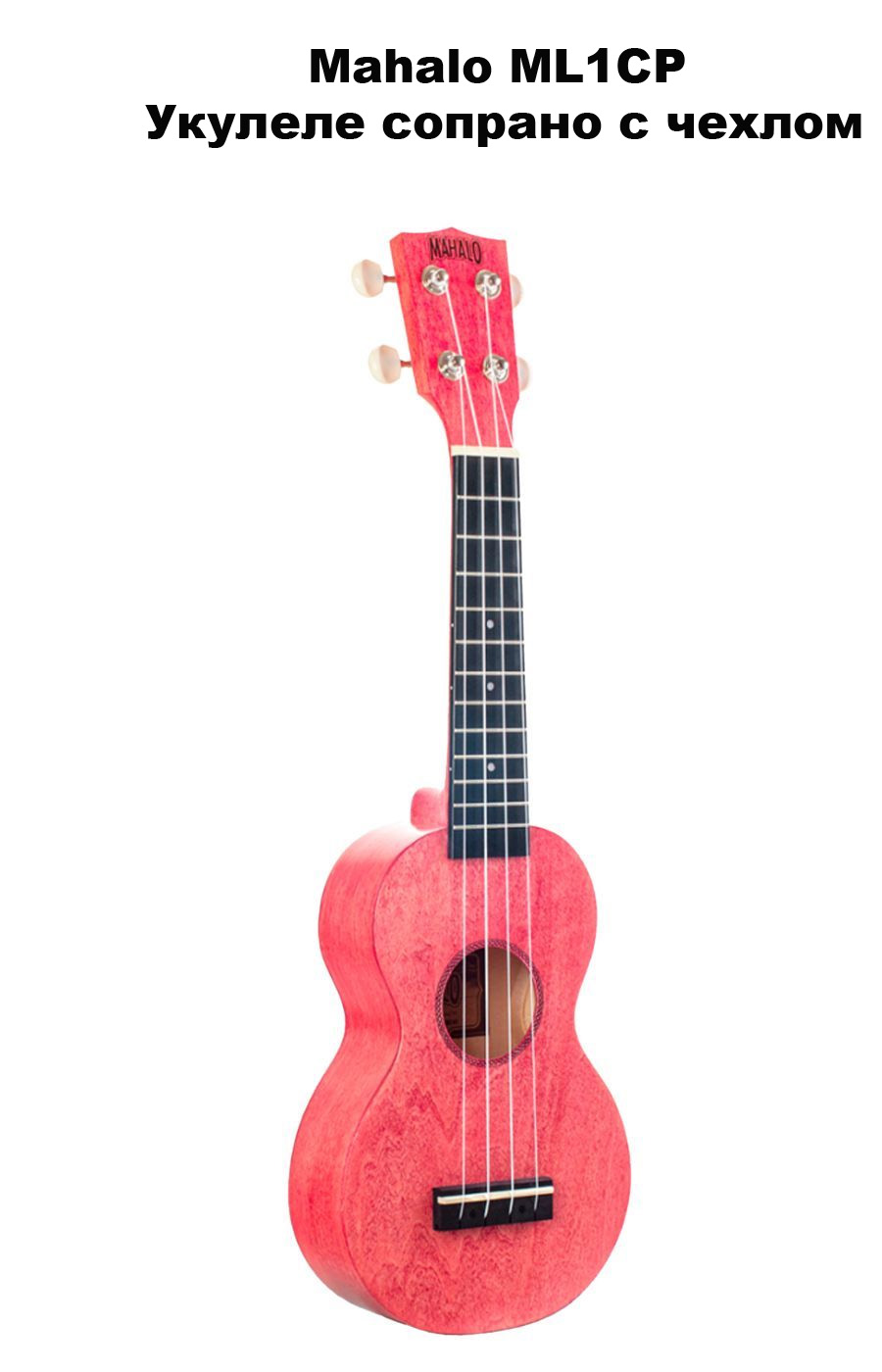 Mahalo ML1CP Укулеле сопрано с чехлом, корпус - липа, гриф - габон, накладка на гриф махагони, струны Aquila Super Nylgut, цвет - Coral Pink, матовая, серия Island Soprano