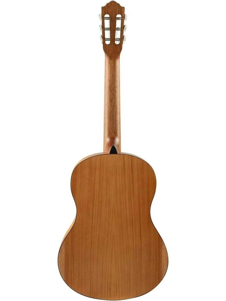 Верхняя дека изготовлена из ели, что обеспечивает чистое звучание, так необходимое для грамотного развития слуха. Нижняя дека и обечайки из красного дерева, благодаря чему звук приобретает мягкость и глубину. Надежная колковая механика обеспечивает мягкий и точный ход колков, легкость при настройке, а главное - хорошо держит строй.
